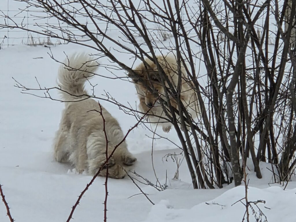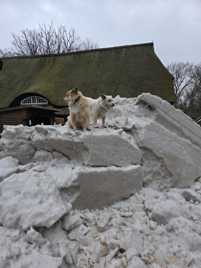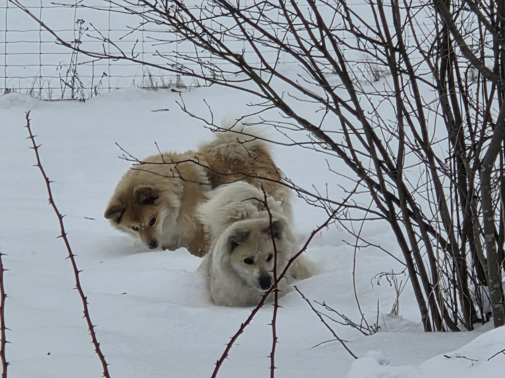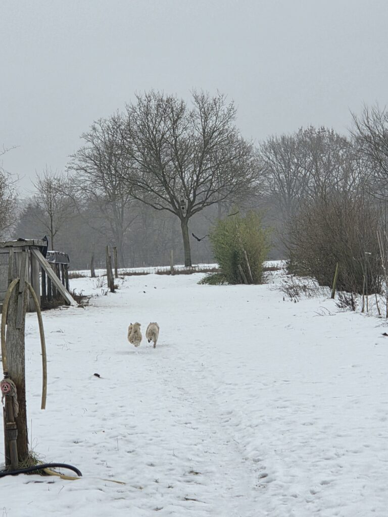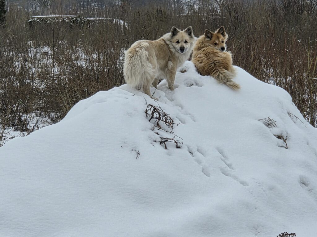 Umpflanzen ist auch vorbei…..so g Winter hatten wir schon viele Jahre nicht mehr! Die Enkelkinder erleben, wie Winter „früher“ war…. Den Islandhunden gefällt’s super: