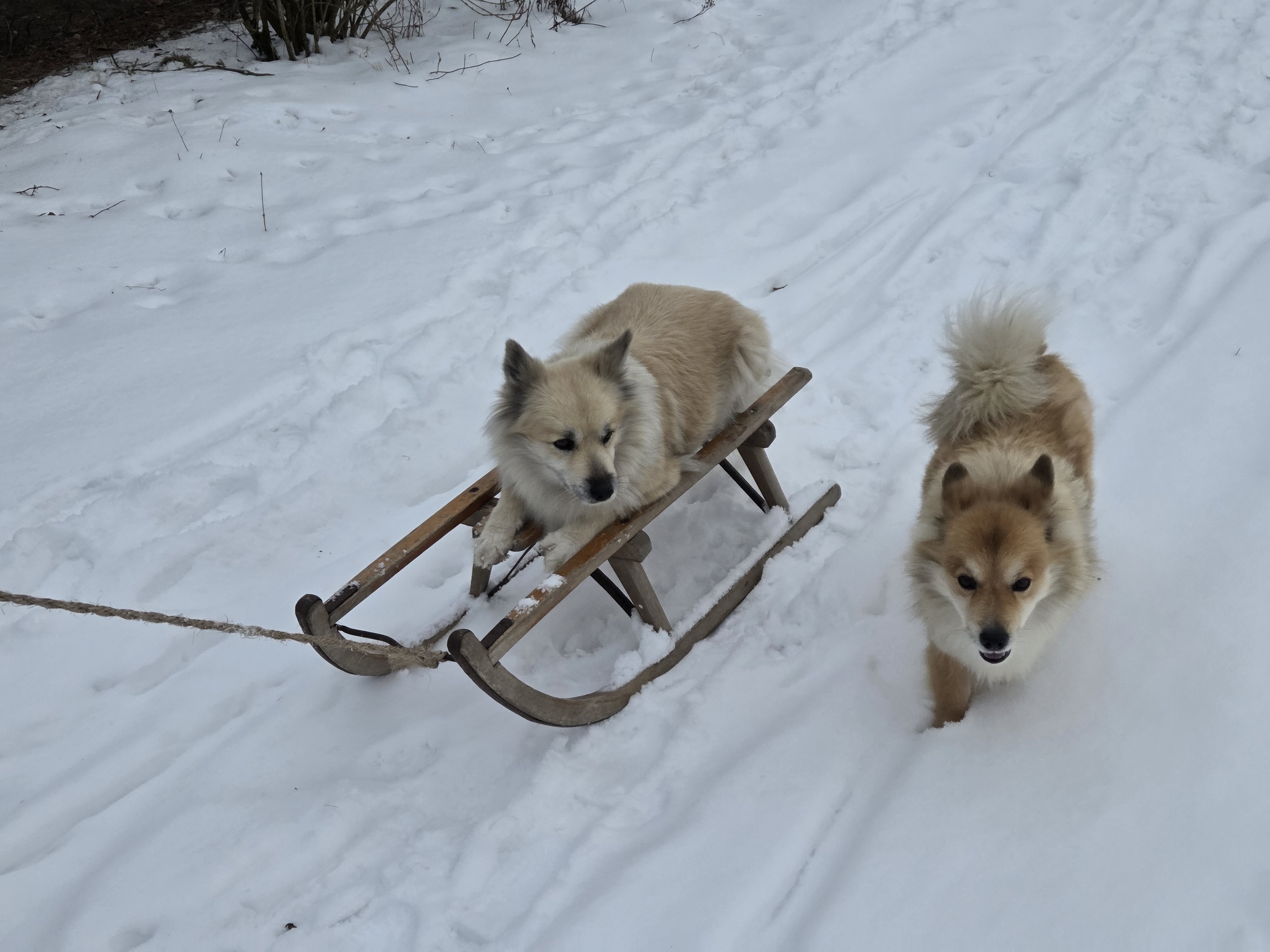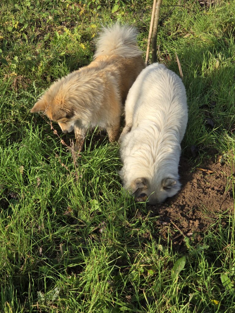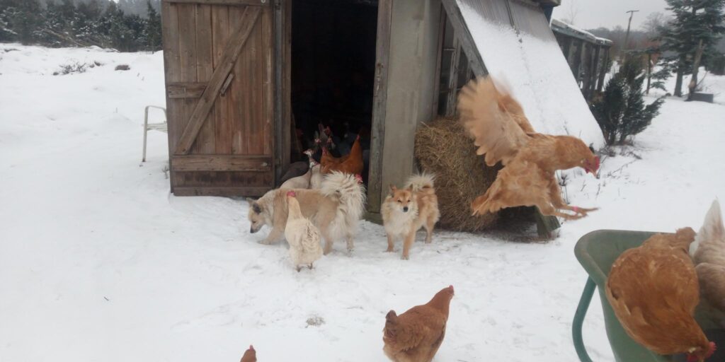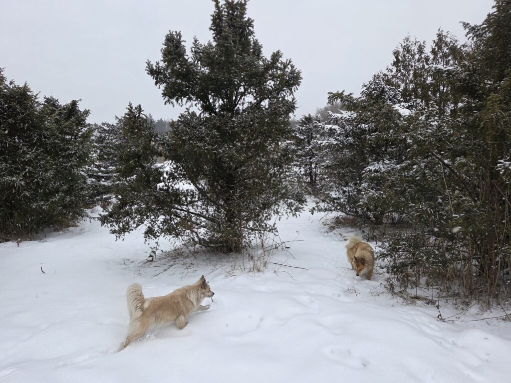 Umpflanzen ist auch vorbei…..so g Winter hatten wir schon viele Jahre nicht mehr! Die Enkelkinder erleben, wie Winter „früher“ war…. Den Islandhunden gefällt’s super: