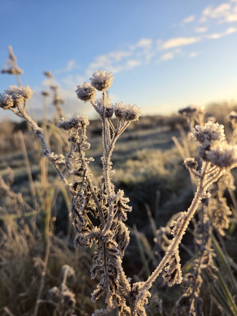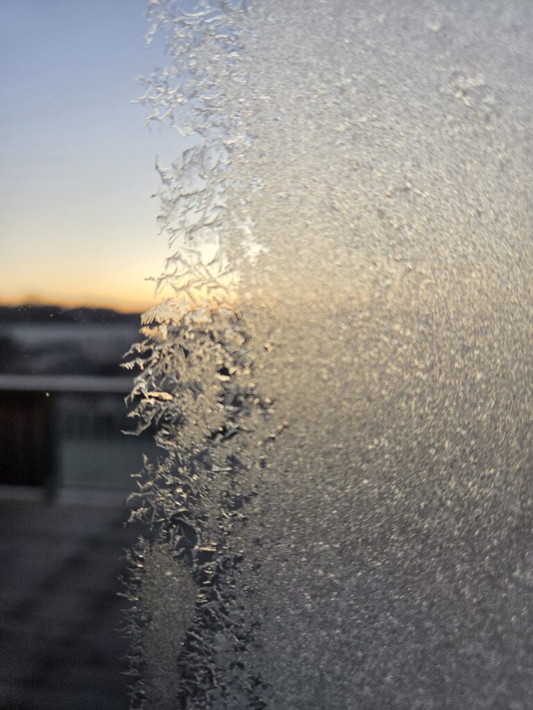 Umpflanzen geht noch, aber im Schatten ist der Raureif liegen geblieben…..soll wieder kalt werden….