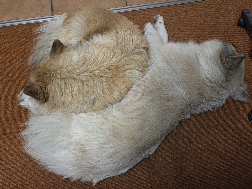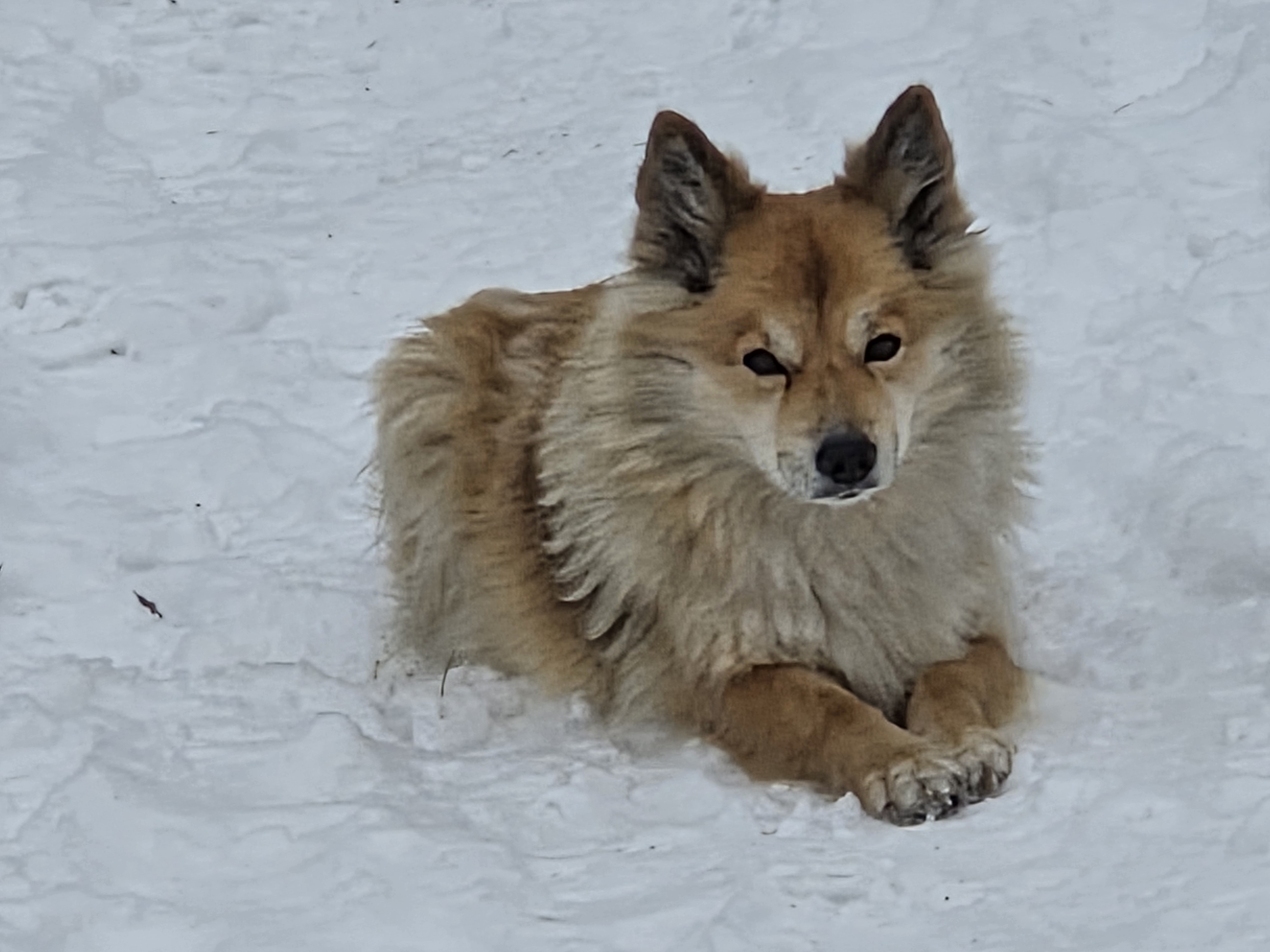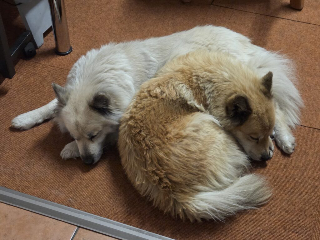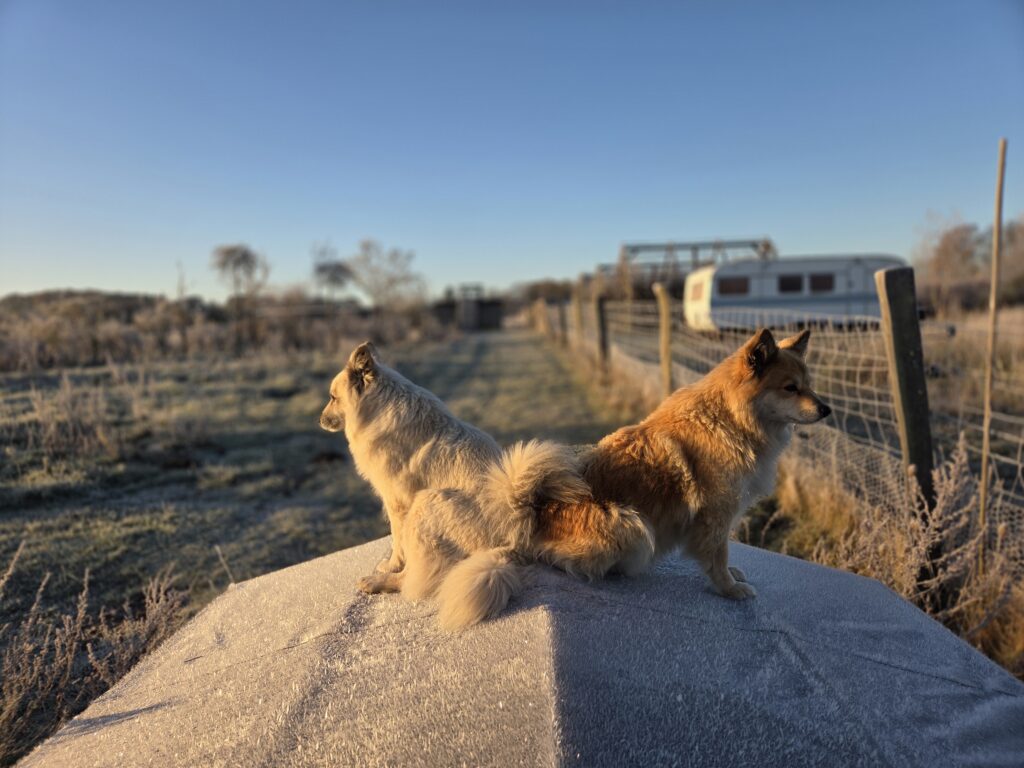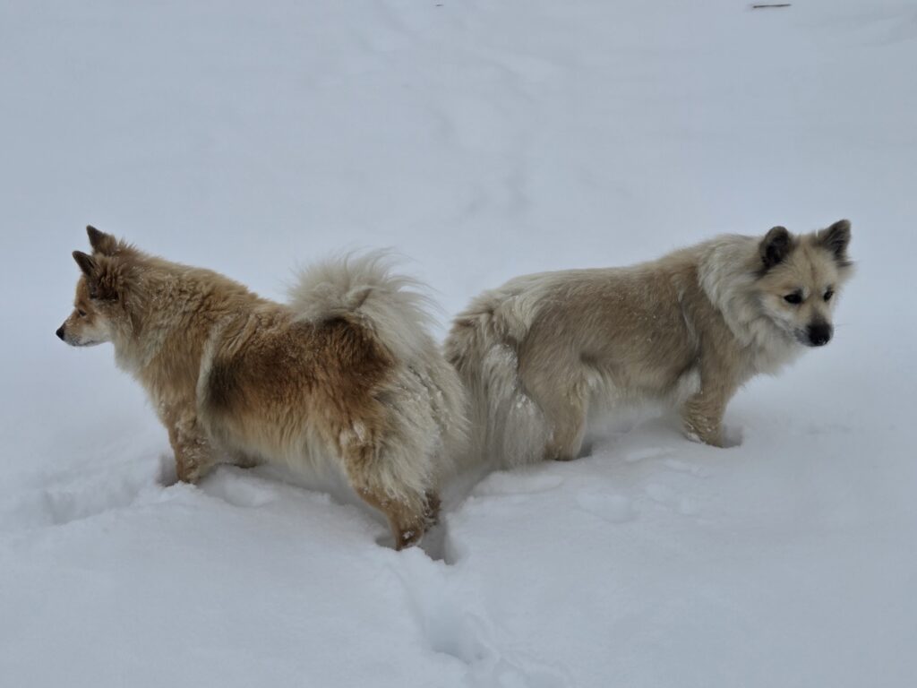Nala und Mia sind echte Islandhunde: Mia liegt bei jeder Gelegenheit im Schnee oder wälzt sich darin, Nala hat ihre Nase ständig drin und frisst den Schnee, als wäre es Softeis…