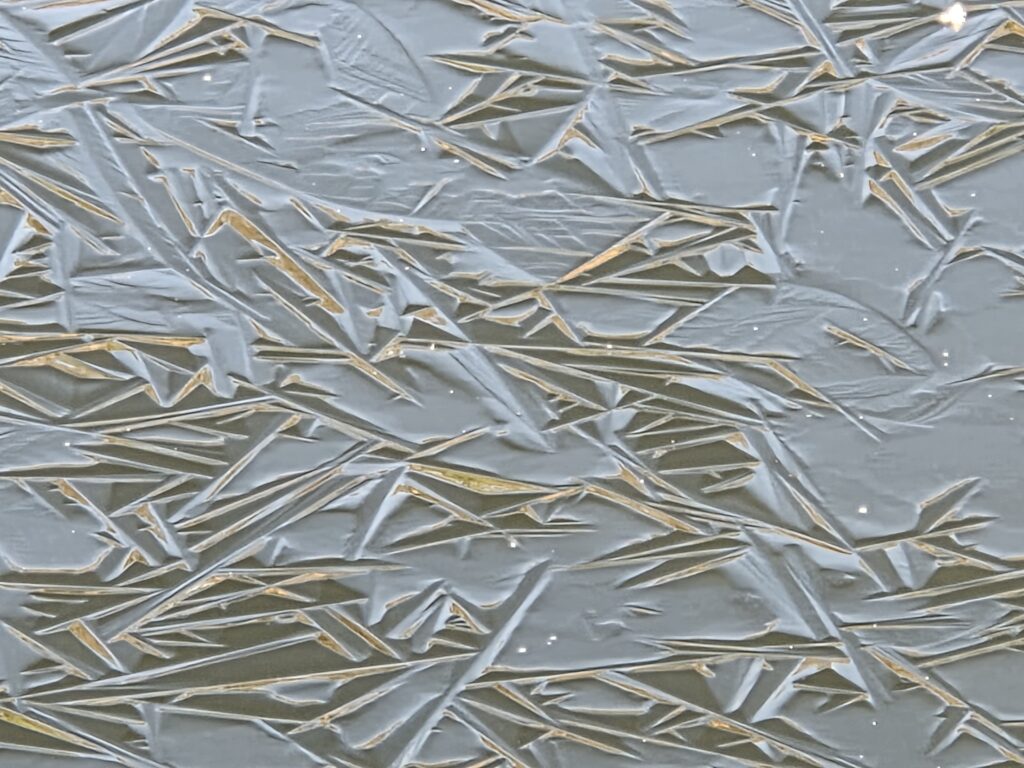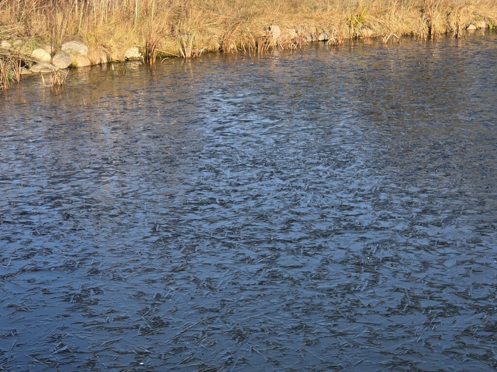 Das Eis auf unserem Teich hat eine besondere Oberfläche