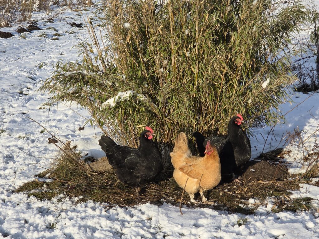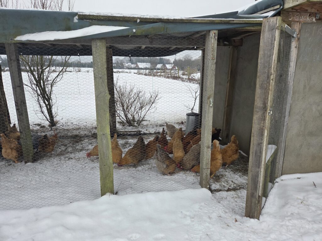 Die Glucke, die wir am Wochenende auf Gipseier gesetzt haben, hat heute 12 echte Eier zum Ausbrüten bekommen- mal gucken, ob nun bei der Kälte am Monatsende die ersten Kücken des Jahres schlüpfen….