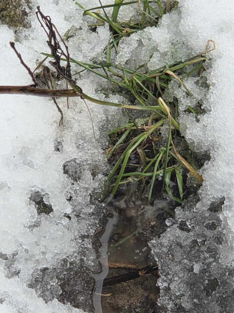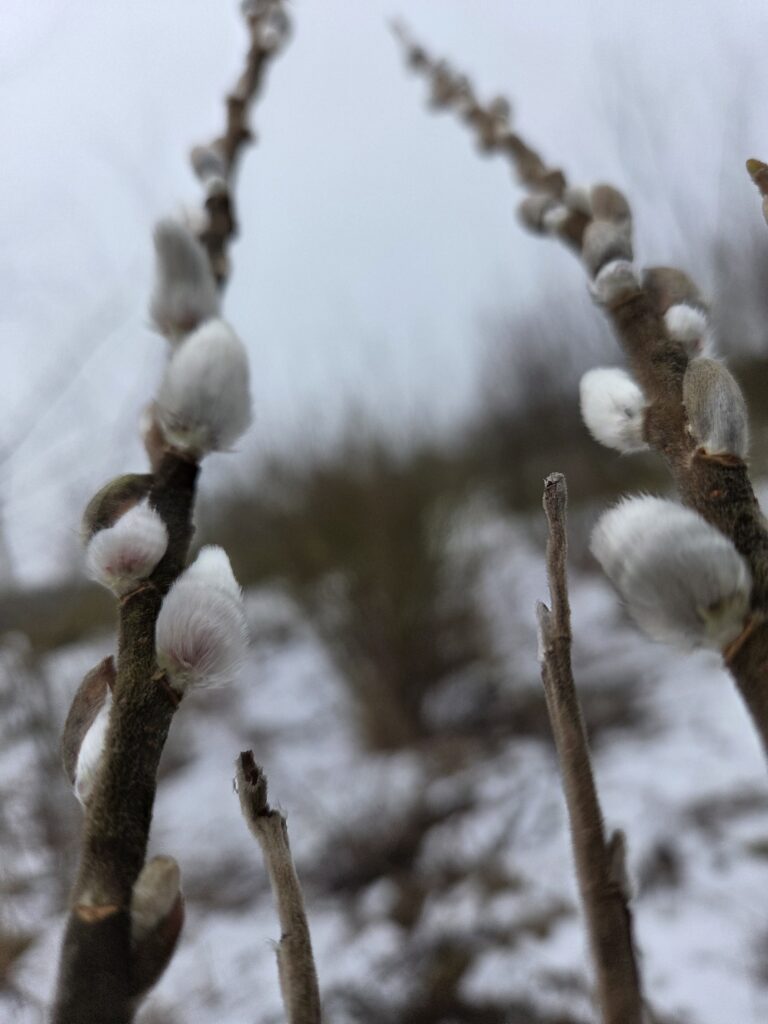 Der Schnee ist noch nicht weggetaut, so lange hat es gefroren…..und doch ist die Natur so lebendig! Die ersten Blüten dieses Jahres!