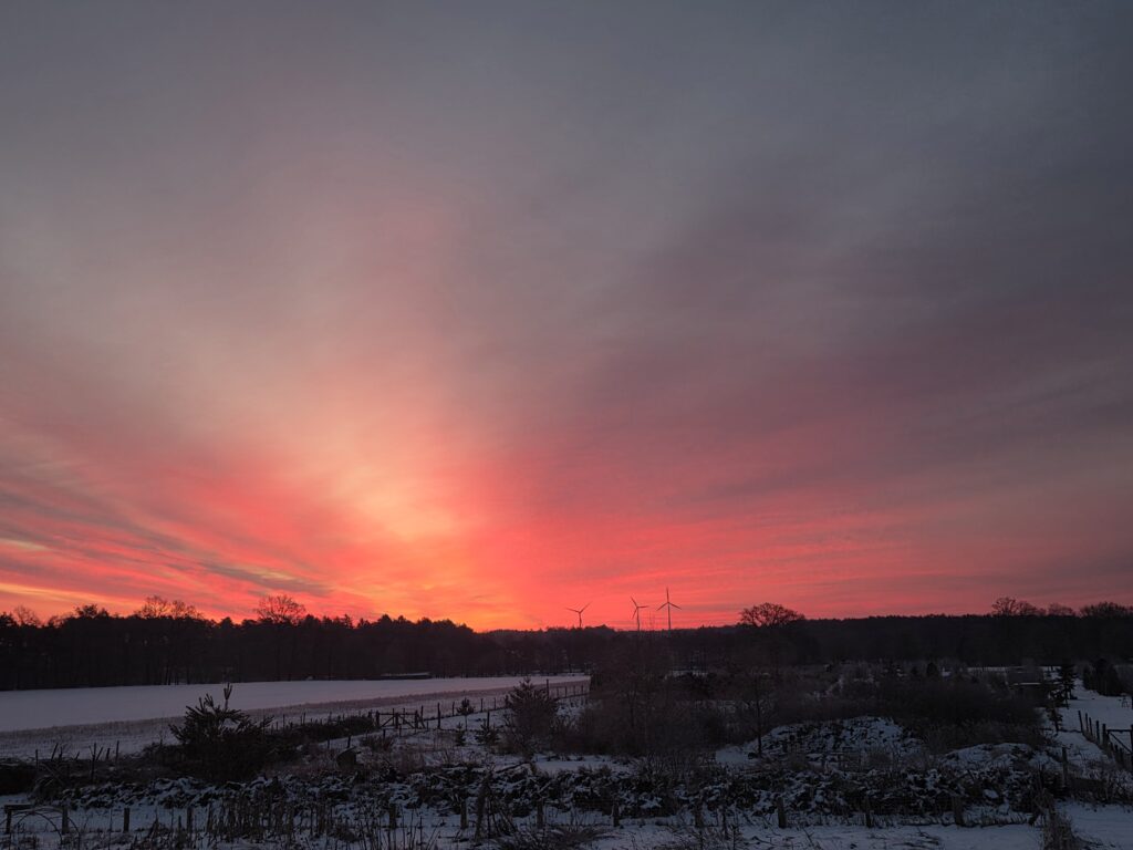 Guckt mal, was wir gestern für einen Sonnenaufgang hatten….